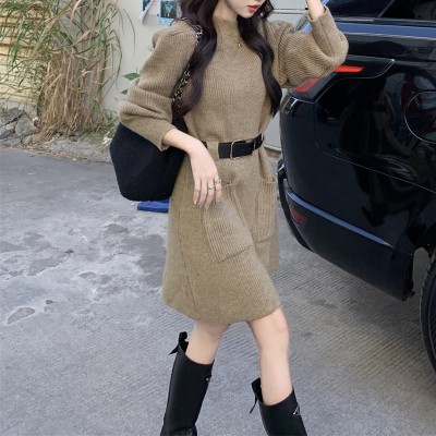 长袖连衣裙女泡泡袖淑女针织连衣裙 S